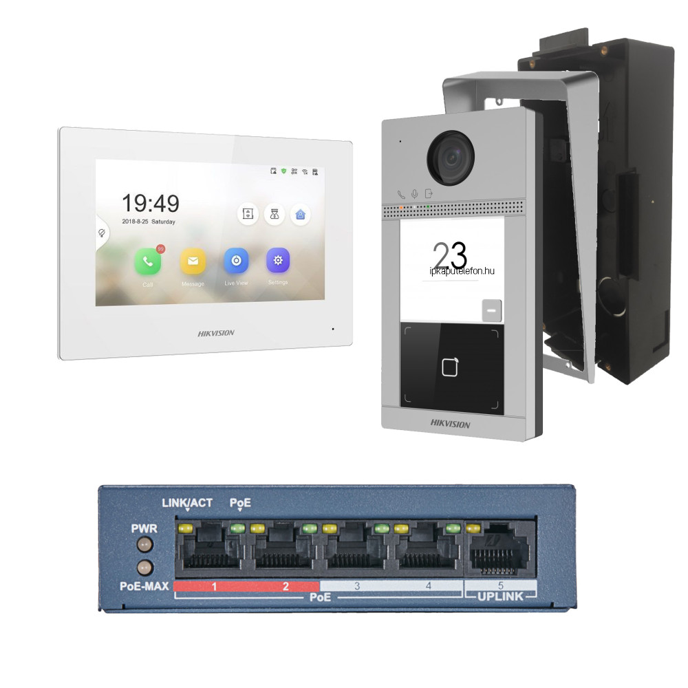 A Hikvision DS-KIS604-S-W/Flush IP video-kaputelefon szett könnyű telepítése és szerelhetősége miatt, ideális választás lehet családi házakhoz. Az analóg video-kaputelefon rendszerekhez képest egyszerű és rugalmas a kiépítése. Elegendő lehet egy hálózati kábel a rendszer üzemeltetéséhez, ez nagymértékben leegyszerűsíti és felgyorsítja a kábelezési munkálatokat. Az analóg rendszerekhez képest, az ilyen IP rendszerekben nagyobb a jelátviteli távolság, továbbá támogatják a szabványos hálózati protokollokat. Az applikáció segítségével távolról is nyomon követhetjük a belépőket és akár vezérelni is tudjuk a beléptetést. Ingyenes mobilapplikáció iOS és Android telefonokhoz, tabletekhez.